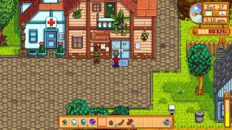 Pierre’s General Store is one of the most important early-game locations because it supplies the essentials that keep your farm running. Players interact with Pierre by purchasing seeds, saplings, backpacks upgrades, and basic items needed for farming and crafting. Selling crops directly to Pierre provides quick income, and checking the store’s stock each season helps players plan what to grow. The main benefit of Pierre’s shop is its reliability, as it is the primary source of seeds and inventory expansion during the early and mid-game.